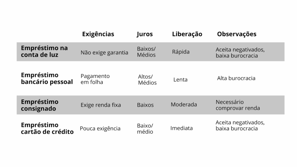 O empréstimo na conta de luz é voltado para quem tem dificuldade de conseguir crédito tradicional e possui os critérios a seguir;